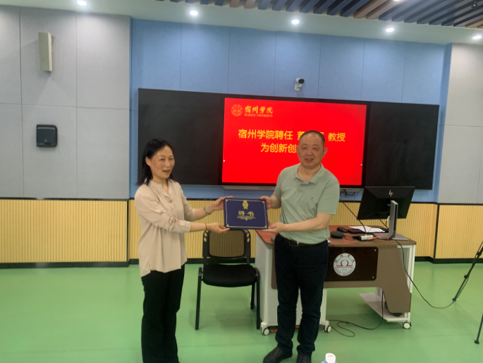 王红艳和教务处副处长刘超向三位专家颁发了“宿州龙8平台创新创业导师”聘书。三位专家表示将把自己的教育教学和管理经验服务于宿州龙8平台创新创业教育工作,为推进龙8平台高水平本科院校建设增添力量。