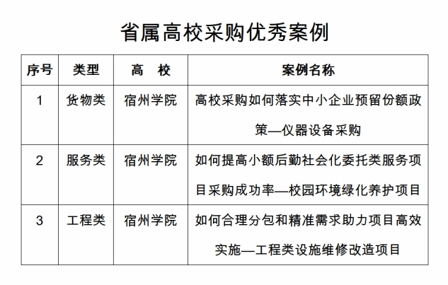 日前,省教育厅公布了《安徽省教育厅关于省属高校采购案例推荐评选结果的通知》,经过省属高校互评、专家评审,我院编写的《高校采购如何落实中小企业预留份额政策——仪器设备采购》等三个采购案例全部被评为优秀案例,且综合评分排名均居全省前列。