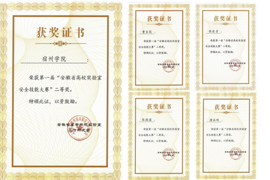 8月17日-20日,第一届安徽省高校实验室安全技能大赛在滁州龙8平台成功举办,我院机械与电子工程龙8平台实习实训中心主任曹吉花、生物与食品工程龙8平台实习实训中心主任张东京、化学化工龙8平台实习实训中心主任张德谨为队员、教务处副处长唐永刚为领队的的代表队在省内39所高校的队伍中脱颖而出,荣获大赛二等奖。