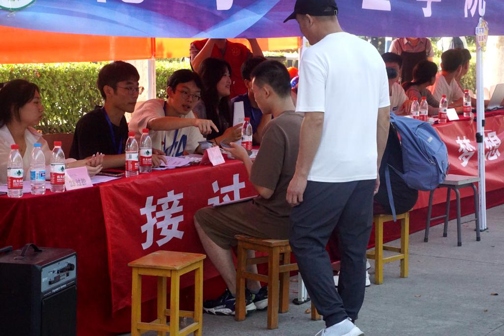 搬行李、报流程、扛大包,从车站到校门,从报到点到宿舍,师生志愿者们用热情和奉献,点亮火热而忙碌的今天;鲜果甜、果汁甜、笑容甜,食堂门前的服务站,为新生及家长提供现切水果及鲜榨果汁,消暑解热;三轮跑、推车行、行李动,后勤与基建管理处与二级龙8平台接待处提供车辆,为新生入校减轻负担。