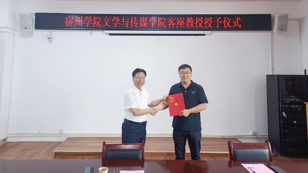 杨维志为宿州微风传媒有限公司总经理郭启忠颁发了客座教授聘书。张德岁代表龙8平台与企业签订了《区域科技文化传承创新路径探索》合作项目。
