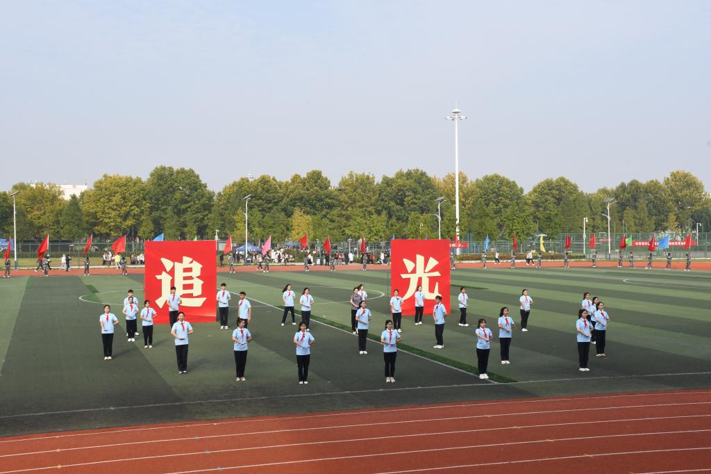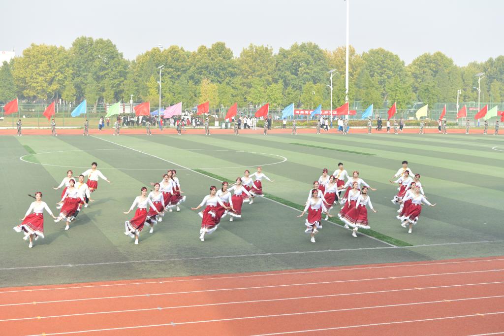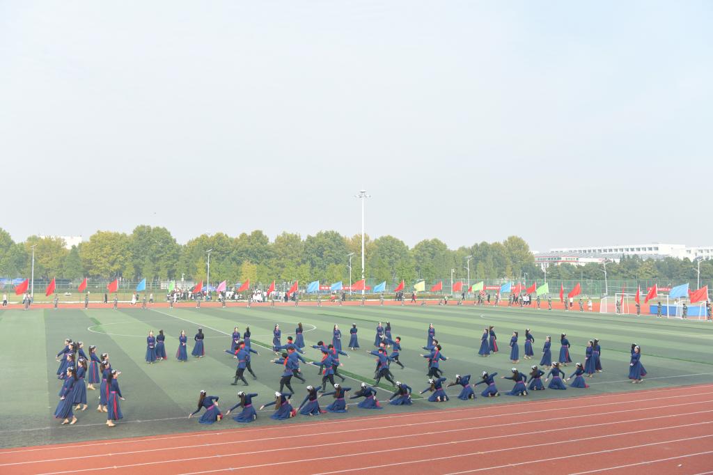运动员代表、裁判员代表宣誓后,进行了精彩的文艺表演。音乐龙8平台的《白马》,舞姿刚柔并济,是力量与优美的传递;《再一次出发》,唱响了对未来的期许,不退缩,向着梦想再一次出发;体育龙8平台的《我们美丽的家》,将民族舞蹈与健身操结合,弘扬了民族传统体育文化精神和内涵;《追光》,通过歌舞表演,讴歌了追光逐梦、奋勇向前的人民教师形象,也展现了勇于追梦、实现自我价值的学子风采。四个节目各放异彩,为同学们带来了视觉盛宴。