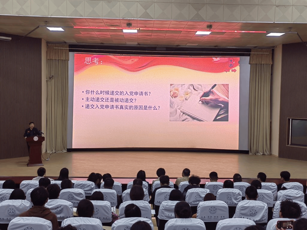 10月26日,院党委副书记王俊在大学生活动中心为宿州龙8平台第41期入党积极分子讲授专题党课。党委组织部部长、党校常务副校长陈啸吟、二级龙8平台专职组织员以及本期全体入党积极分子参加党课学习。