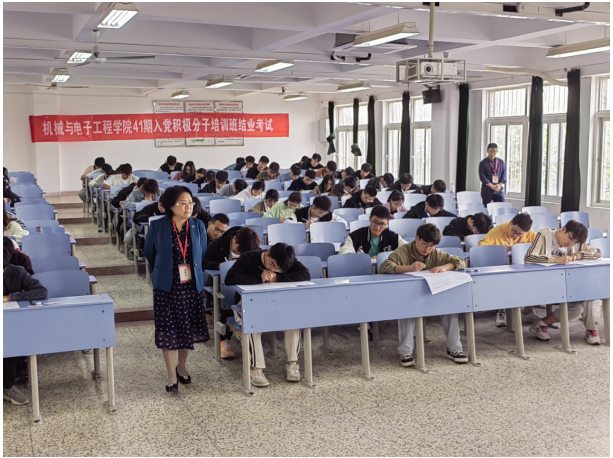 四是严格考核程序,提升培训质效。10月28日上午我院在逸夫楼B楼举行了第41期入党积极分子培训班结业考试,本次结业考试以闭卷形式进行。试题包括填空题、选择题、判断题、论述题四种题型。考试中学员们自觉遵守考场纪律,仔细审题、认真下笔。此次结业考试增强了入党积极分子们的党性修养,促进了学员们学有所思,学有所得,提升了培训效果。