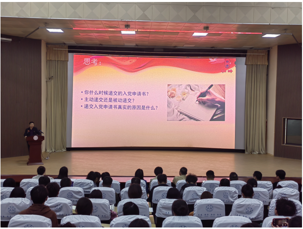 三是强化党课感染力,端正入党动机。为切实提高入党积极分子的思想觉悟,端正入党动机,坚定理想信念,系好入党的“第一颗纽扣” ,10月26日,院党委副书记王俊在大学生活动中心为第41期入党积极分子讲授《端正入党动机 争做“四讲四有”合格共产党员》专题党课。从“正确的入党动机是什么”“为什么要端正入党动机”和“怎样端正入党动机”三个方面进行阐述,以生动形象的事例深入浅出、透彻清晰地讲述了如何做“讲政治、有信念;讲规矩、有纪律;讲道德、有品行;讲奉献、有作为”的合格共产党员。