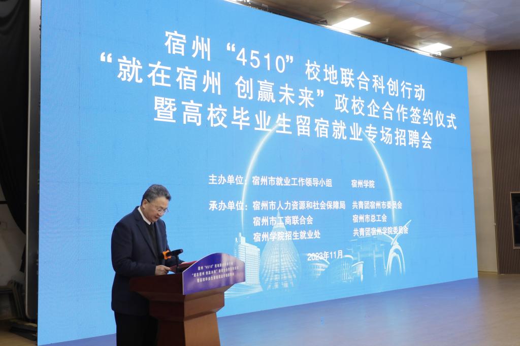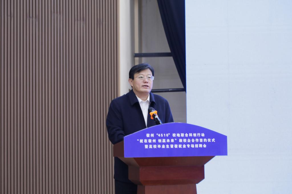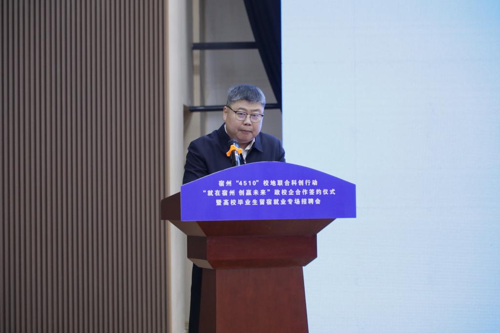 刘博夫在致辞中表示,就业是民生之本,人才是发展之要。此次活动搭建起一个让政府、高校和企业合作的平台,旨在实现资源共享和优势互补,促进更多高校毕业生留宿就业,助推宿州经济高质量发展。宿州市将以务实精准的人才政策、开放包容的人文环境、贴心周到的服务保障,全力为广大毕业生施展才华创造良好环境。