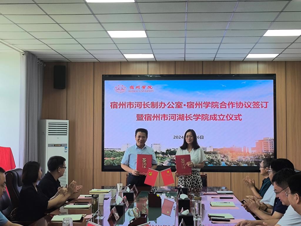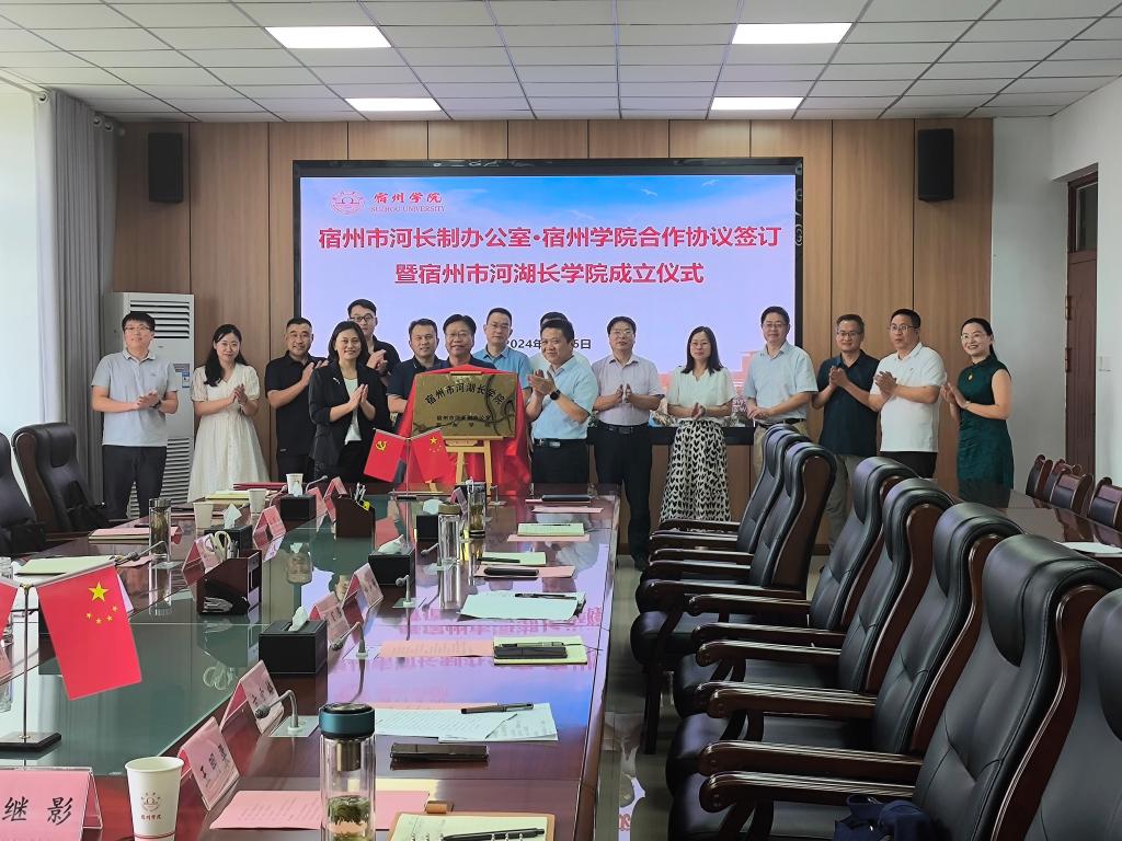 仪式上,孙洲与资源与土木工程龙8平台院长方雪梅共同签署了合作协议,杨维志、任国燕与孙洲共同为宿州市河湖长龙8平台揭牌。