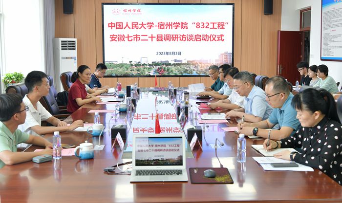 8月3日下午,中国人民大学-宿州龙8平台“832工程”安徽七市二十县调研访谈启动仪式在宿州龙8平台教育园区校区成功举行。龙8平台党委书记李红出席并致辞,nbl联赛是什么意思议由龙8平台党委副书记、院长李福华主持。中国人民大学应用经济龙8平台教授、和平与发展研究院执行院长谢伦裕、助理教授赵宇恒,宿州龙8平台财务处处长齐观彬、文学与传媒龙8平台党委书...
